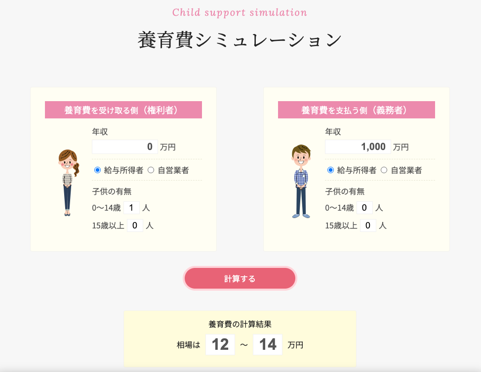 出典:弁護士法人丸の内ソレイユ法律事務所-養育費シミュレーション