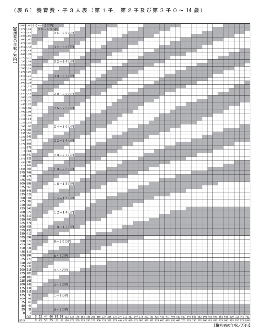 離婚後の養育費の目安を簡易・迅速に算出するための表